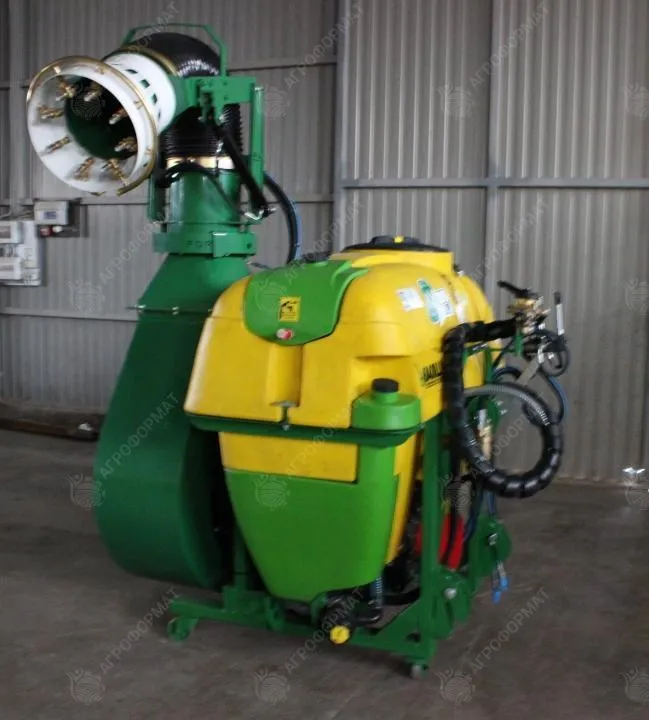 Смешивание жидкостей и установка направления распыления состава (круговой охват) посредством управляющей гидродинамической системы. Расход рабочего состава – 145 л в минуту (объём бака – 800 л). Автозакачка воды через снабжённый фильтром шланг длиной 6 м. Оснащение 8-ю двухпозиционными латунными форсунками, карданным валом и насосом APS-145 с четырьмя диафрагмами. Вес устройства – 385 кг, габариты – 175 (длина), 155 (ширина) и 185 (высота) см.